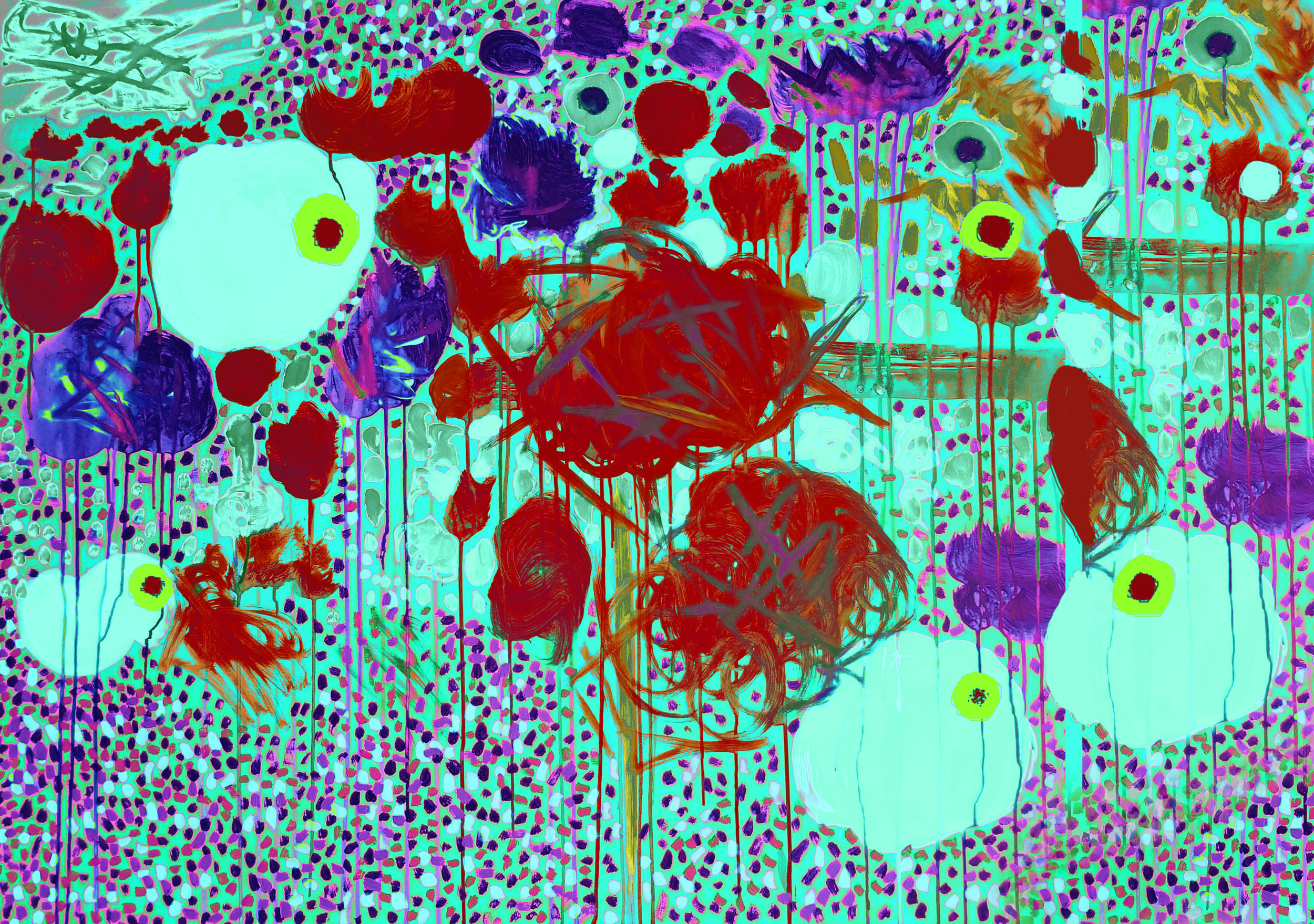 Solar milk is a conceptual food imagined as created entirely from sunlight and air, representing a vision of completely harmless, ethical nourishment. Nicholaas Chiao envisions our future as an immortal nation on a planet free from war and cruelty. In this painting series, the artist employs complementary and triadic color harmonies and painterly forms to convey the abstract beauty of this idea. Here, the boundaries between nourishment and art dissolve, inviting us to reflect on the possibility of an existence that is both ethical and sublime.